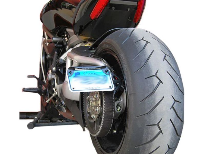 2. 2 position side mount license plate that eliminates the stock license plate fender, yet using the same mounting location allows you to ride with your license plate mounted horizontally or vertically