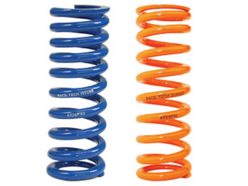 HIGH PERFORMANCE SPRINGS: RACE TECH MANUFACTURES PRECISION HIGH PERFORMANCE SPRINGS THAT HAVE A HIGH STIFFNESS TO MASS RATIO. IN OTHER WORDS; OUR SPRINGS ARE LIGHTWEIGHT FOR THE THEIR PARTICULAR RATE. THIS REQUIRES THE FINEST MATERIALS AND PROCESSING.