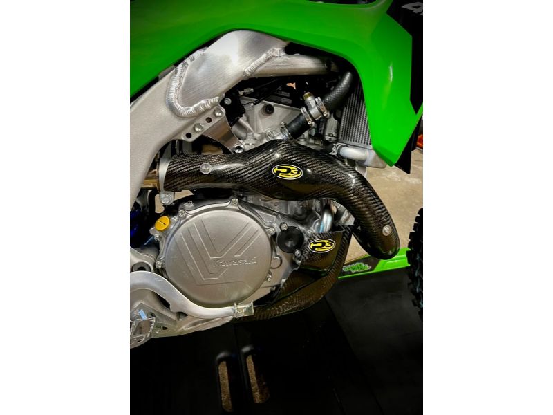 P3 Carbon Fiber Composite 4-Stroke Head Pipe Guard/Heat Shields are a must for any 4-Stroke rider. This product serves three purposes. 1) The Heat Shield keeps your expensive riding pants and boots protected from super heated exhaust pipes. 2) The Pipe Guard protects your sensitive head pipe from unwanted dents and dings. 3) P3's polished carbon product and colorful logo gives your off-road machine a full factory racing look!