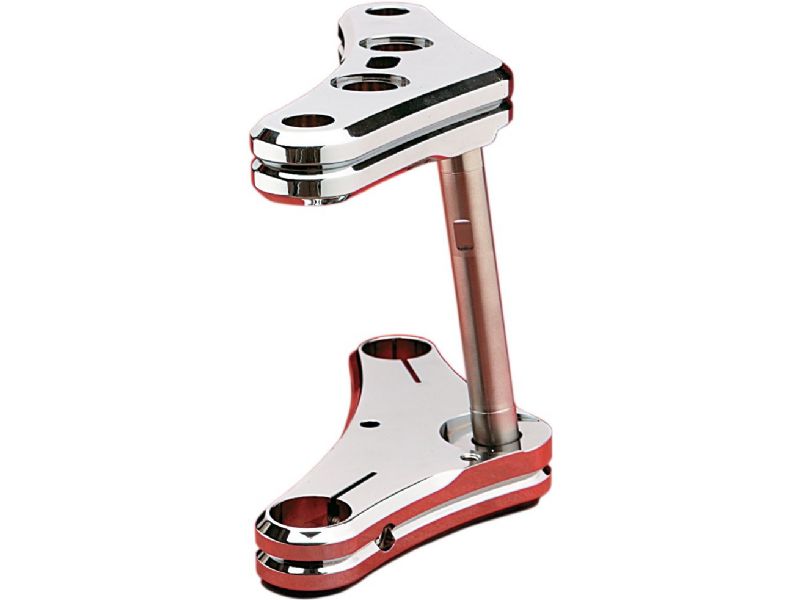 Raked triple trees change the handling characteristics of the motorcycle. Steering geometry must be calculated to determine which degree of rake is most suited for your application. Trees with more than 3° of rake should not be used in stock frame applications.
