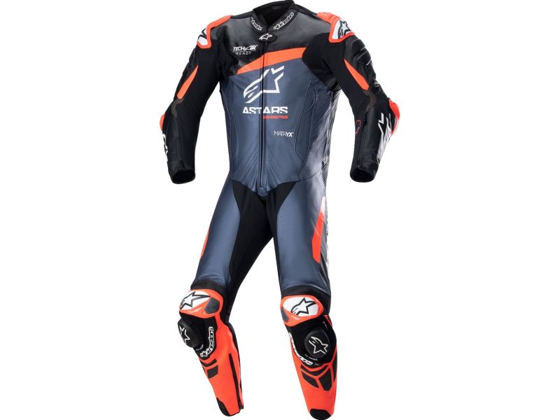 The Tech-Air® Ready GP Plus v4 leather suit is a complete revolution of the existing v3 model featuring an all-new construction including a blend of Flex Plus racing bovine leather, Alpinestars Composite Stretch Plus material, Matryx®, HRSF, and GP DFS sliders perfect for the sport and track rider looking for an upper mid-level suit with the latest material innovations