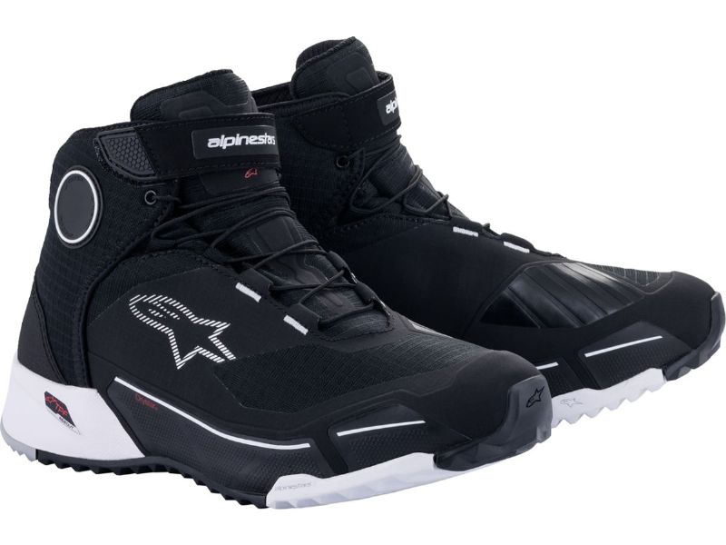 Tongue with bellows construction has been designed to remain in position when riding for a snug, secure fit