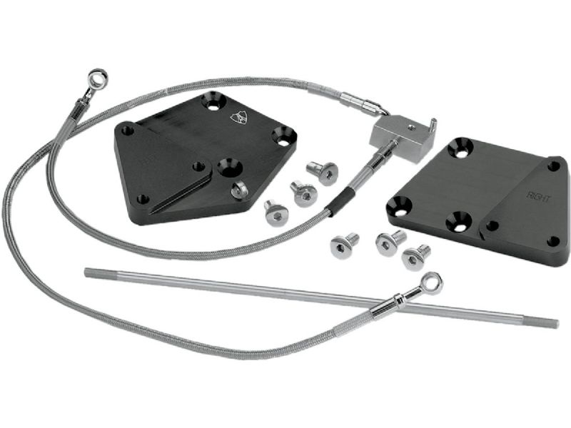 Each 3- extension kit includes two billet aluminum adaptor plates, extended rear brake line, extended shift rod, kickstand spring pin, bracket for 04-up models and all necessary hardware