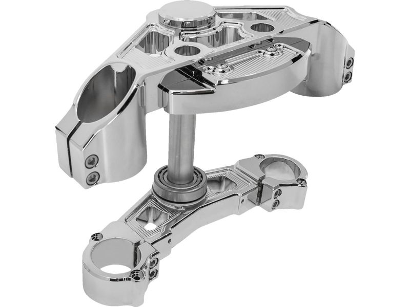 Complete triple tree kit CNC-machined from billet aluminum featuring a drop design