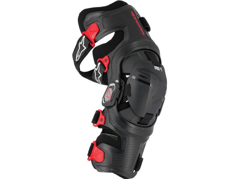 With a slim ergonomic design offering a high level of offroad performance and comfort during dynamic movement, the Supertech RK-7 Knee Brace has been engineered to provide superior knee support, while still being lightweight, breathable, comfortable, and protective. This knee brace features a free-floating Nucleon Plasma knee protector encased in an innovative asymmetric fiber reinforced frame construction for enhanced levels of rigidity. This brace provides optimal structural integrity, rigidity and comfort, and thus reduces the risk of sustaining injuries to the medial and lateral collateral ligament, the anterior and posterior cruciate ligament, and the lateral and medial meniscus. The replaceable knee cups are constructed with a polyurethane outer shell backed with a Nucleon Plasma protector for the optimum blend of impact protection, flexibility and scratch resistance. The replaceable strategically positioned upper and lower patella extensions ensure maximum coverage regardless of the flexion or extension angles. The extremely stable, slim-design four-point hinge system perfectly follows the articulation of the knee while the extension stops, which are available in a range from 0 to 30 degrees, assist in setting the brace to the desired maximum opening angle. The stainless steel bushings in the four-point hinge system have an anti-oxidation treatment. Nucleon Plasma is a viscoelastic material engineered from bio-based polymers and formed into a structure that is pliable in all directions while maintaining the ability to dissipate impact energies. Lightweight and highly ventilated, the knee protector offers strong impact force dispersion and absorption while ensuring maximum coverage in all riding positions.