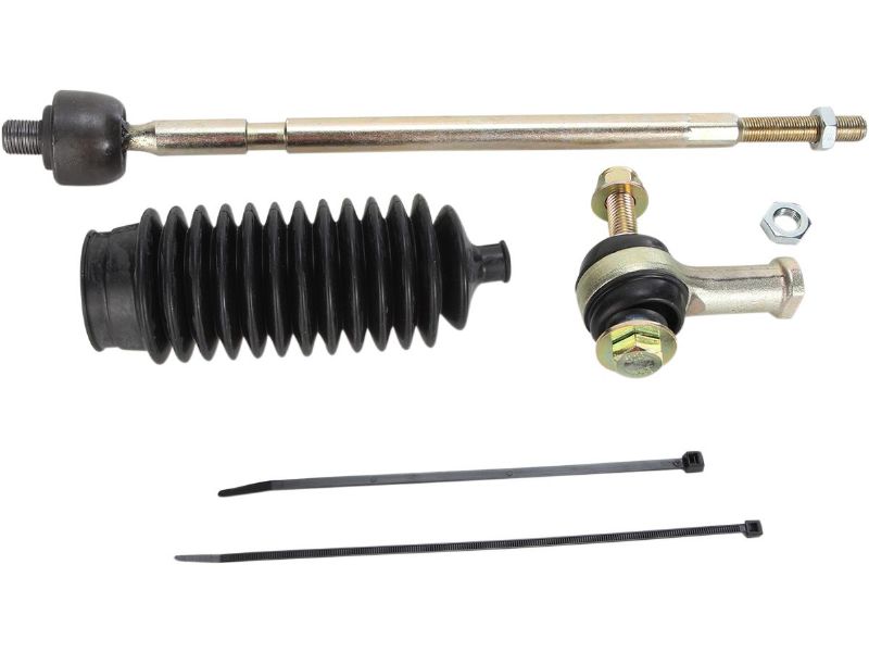 3. Tie-rod end kit right, Inner and outer -- contains both tie-rod end and shaft that connects to the steering rack as well as the outer tie-rod end; kit also contains a boot and required hardware for the right (passenger) side