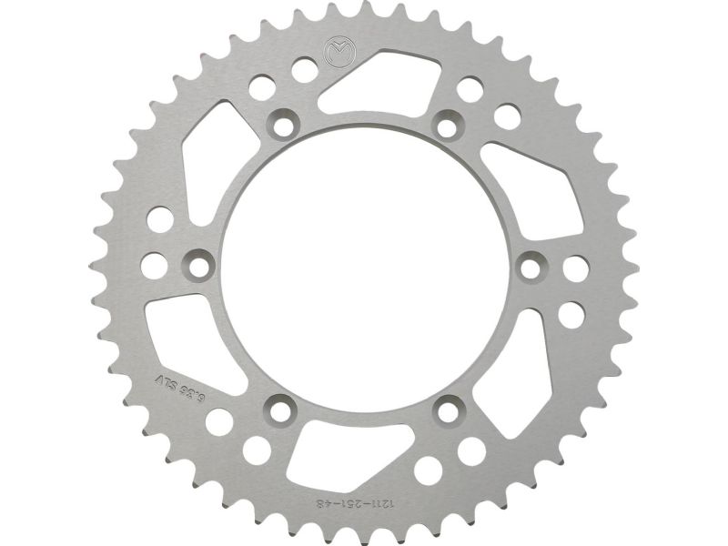 1. The 7075 T651 aluminum we use for these sprockets receives an extra tempering which reduces distortion and provides optimal thickness vs. typically thinner 7075 T6 sprockets