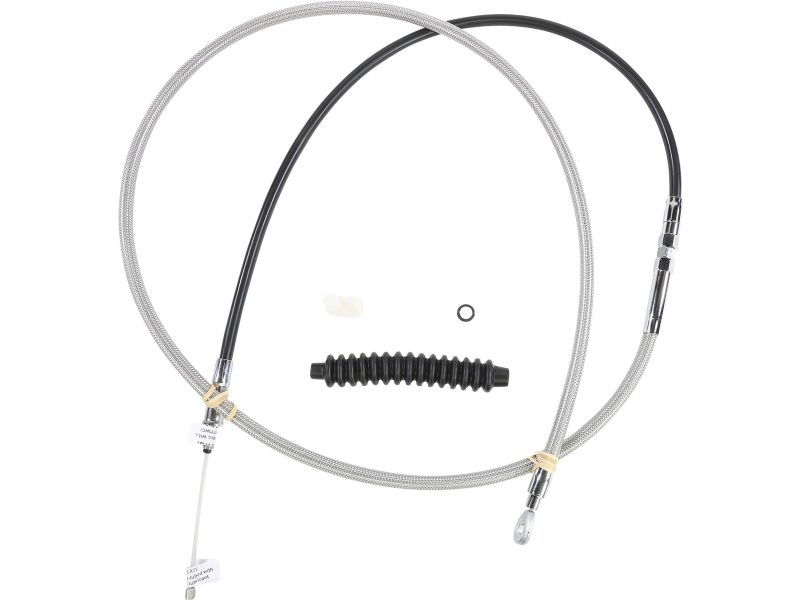Cables feature chrome-plated fittings, stainless-steel braided outer casings, tempered-steel inner wire and a nylon inner sleeve for smooth operation