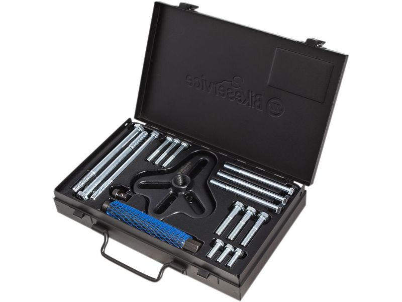 Kit includes 2 and 3 way yoke, 125 mm forcing screw, live tip, 3pc M6 x M1.0 x(L) 20 mm bolts, 3pc M6 x M1.0 x (L) 45 mm bolts, 3pc M8 x P1.25 x (L) 45 mm bolts, 3pc M8 x P1.25 x (L) 100 mm bolts, 3pc 3/8-x 16t UNC x (L) 125 mm bolts
