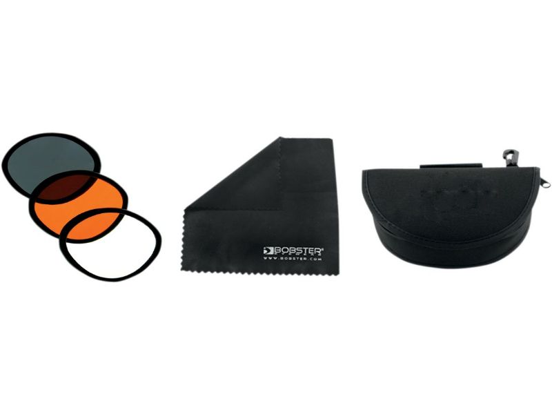 Include three shades of shatter-resistant lenses: anti-fog smoke, for most standard riding conditions; amber, for overcast conditions; clear, for nighttime riding