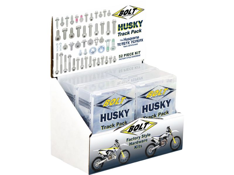 Contains essential hardware in factory style and finish including M5, M6, and M8 torx head flange bolts, shroud screws, seat bolts, fork guard bolts, fender, and side cover fasteners, case cover bolts, motor mount hardware, brake pin clips, concave washers, sub-frame bolts