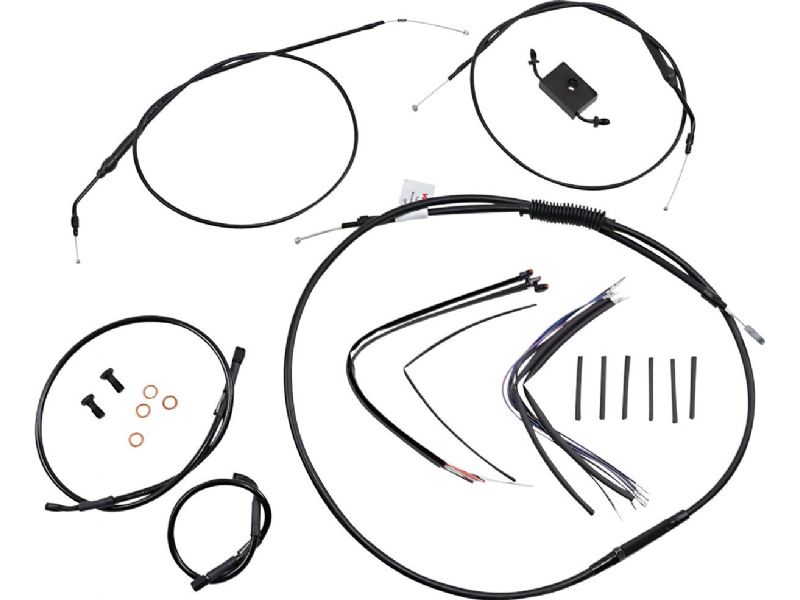 - Includes a bar length specific extended brake line, extended clutch cable and extended wiring for installation