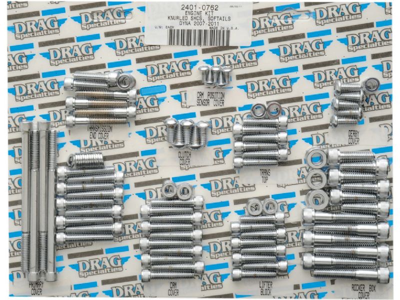 Complete motor sets for 87-94 Big Twin include bolts for cam, primary, point, clutch, inspection and chain covers, lifter base, inner primary, top front and rear motor mounts, timing plug and header mount screws
