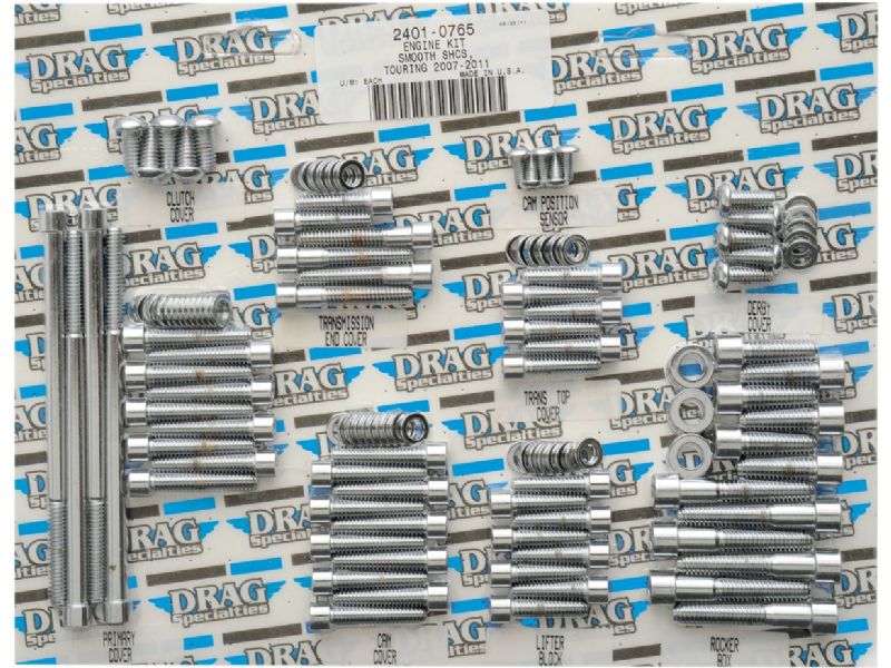 Complete motor sets for 87-94 Big Twin include bolts for cam, primary, point, clutch, inspection and chain covers, lifter base, inner primary, top front and rear motor mounts, timing plug and header mount screws