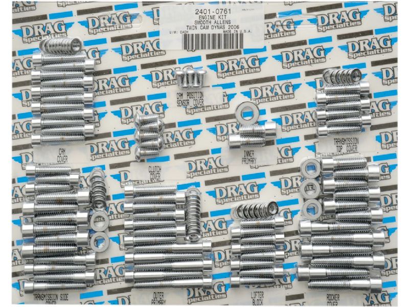 Complete motor sets for 87-94 Big Twin include bolts for cam, primary, point, clutch, inspection and chain covers, lifter base, inner primary, top front and rear motor mounts, timing plug and header mount screws