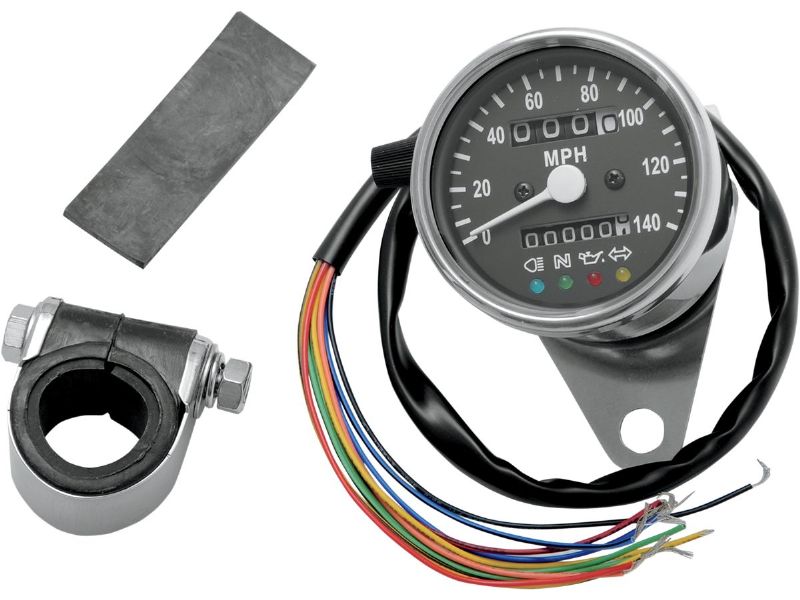 MPH Mini Mechanical Speedometer with LED Indicators - Black Face - 2:1 Ratio - 2.4-