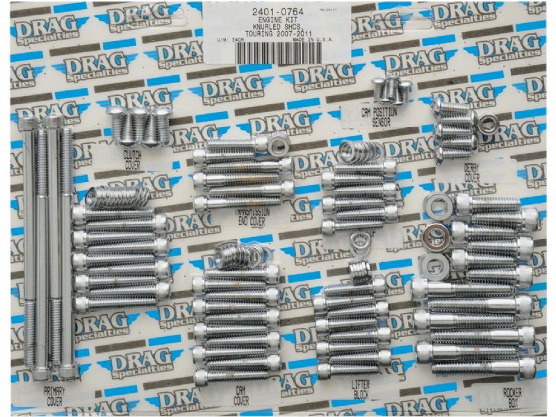 Complete motor sets for 87-94 Big Twin include bolts for cam, primary, point, clutch, inspection and chain covers, lifter base, inner primary, top front and rear motor mounts, timing plug and header mount screws