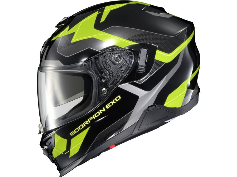 ScorpionEXO® continues to set the standard when it comes to Value in a motorcycle helmet and the EXO-T520 is the latest example. A lightweight, low-profile, and extremely comfortable helmet that's perfect for both city commutes and long-distance touring. The aggressive, aerodynamic shape and unique AirFit® inflation system combines to reduce drag and lift, while the EXO-T520’s dual homologated (DOT & ECE) Advanced Polycarbonate shell and Multi-Density EPS provide the energy displacement and protection you need. The EXO-T520’s Anti-Fog coated Everclear® outer face shield provides shatter and scratch resistance while, internally, the integrated SpeedView® Sun Visor will help block the sun when you need it. 6 adjustable intake vents and integrated rear exhaust vents align perfectly with internal channels, keeping you cool when temperatures rise, and warm when temperatures drop