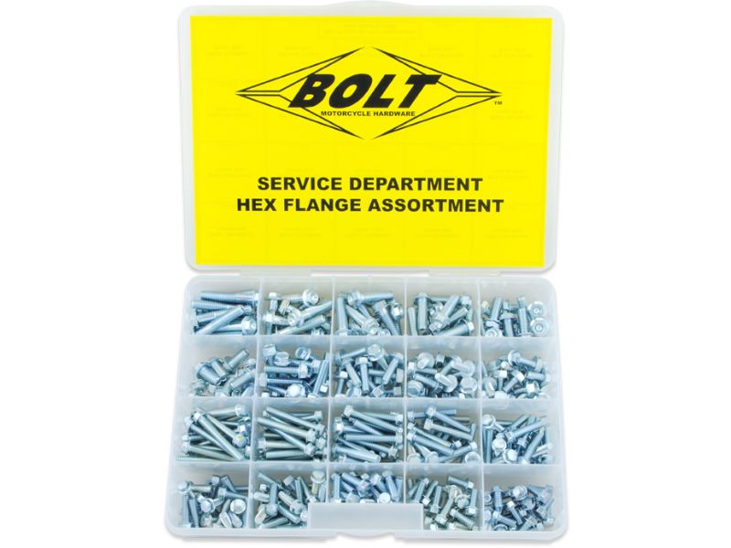 - Contains 360 pcs of M6 and M8 hex flange bolts in factory style and finish in a clear, stackable organizer