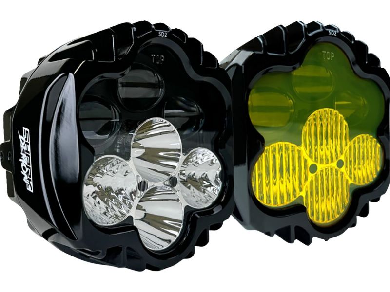 Selective yellow fog lamp powers on providing an additional 8050 raw/2050 effective lumens and riding clarity