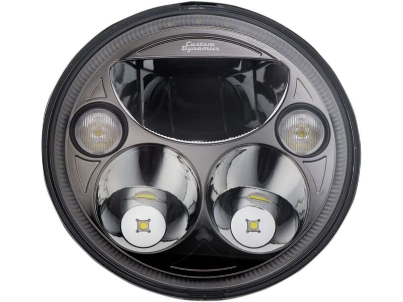2. Complex reflector design features three low beam LEDs and two high beam LEDs with a combination of projector and reflector type LEDs and built in halo ring