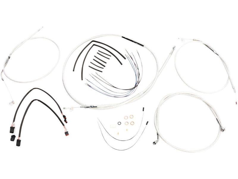 2. Kit includes throttle and idle cables of throttle-by-wire extensions, clutch cable or hydraulic clutch line, brake lines, copper crush washers, hardware, and any necessary switch wiring of turn signal extension