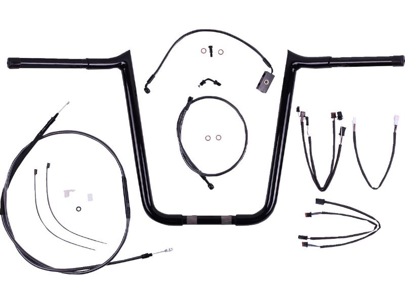 Kits include: Magnum Viking Handlebars, throttle and idle cables or Throttle-By-Wire extensions, clutch cable or hydraulic clutch line, brake lines, copper crush washers, hardware and any necessary switch or turn signal extensions