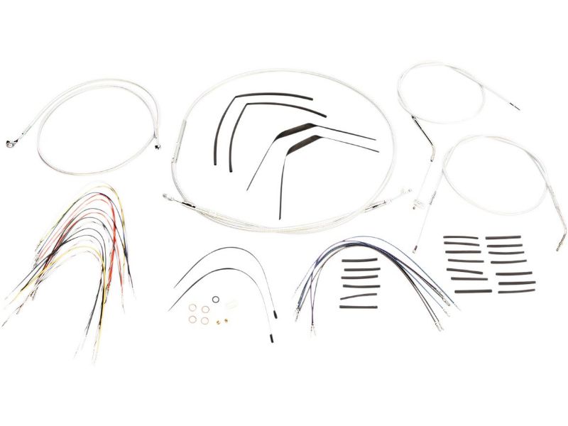 2. Kit includes throttle and idle cables of throttle-by-wire extensions, clutch cable or hydraulic clutch line, brake lines, copper crush washers, hardware, and any necessary switch wiring of turn signal extension