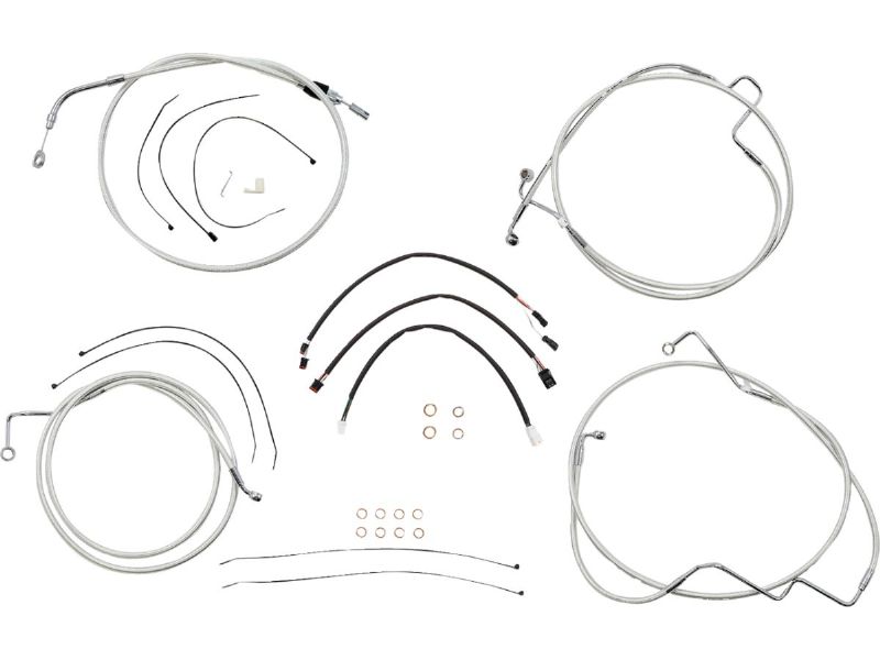 2. Kit includes throttle and idle cables of throttle-by-wire extensions, clutch cable or hydraulic clutch line, brake lines, copper crush washers, hardware, and any necessary switch wiring of turn signal extension