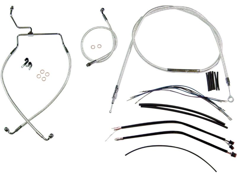 2. Kit includes throttle and idle cables of throttle-by-wire extensions, clutch cable or hydraulic clutch line, brake lines, copper crush washers, hardware, and any necessary switch wiring of turn signal extension