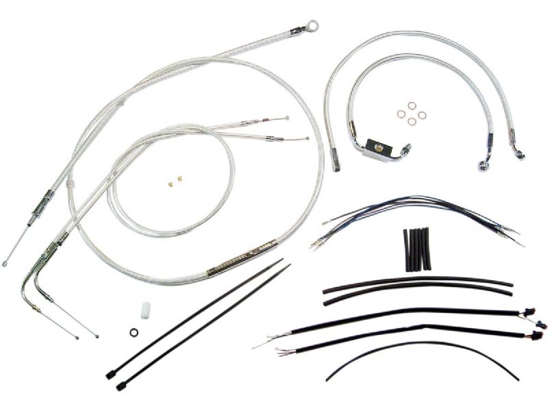 2. Kit includes throttle and idle cables of throttle-by-wire extensions, clutch cable or hydraulic clutch line, brake lines, copper crush washers, hardware, and any necessary switch wiring of turn signal extension