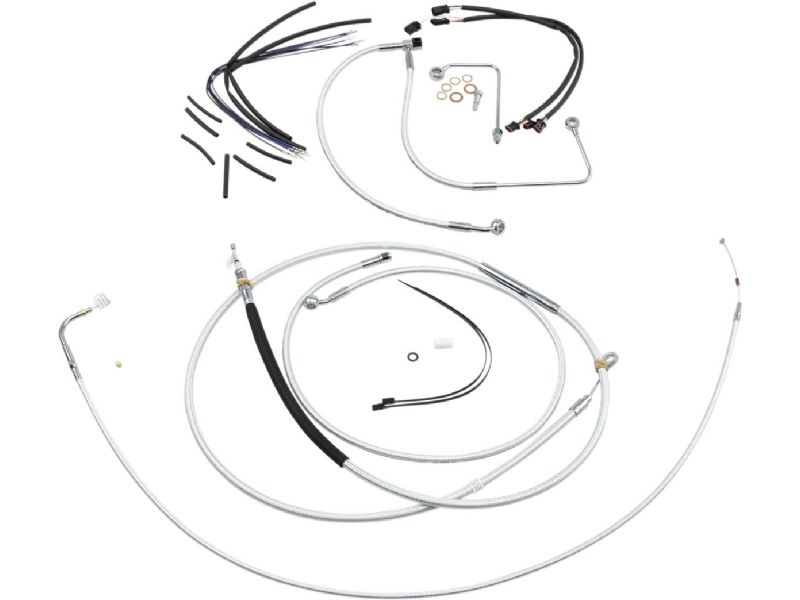 2. Kit includes throttle and idle cables of throttle-by-wire extensions, clutch cable or hydraulic clutch line, brake lines, copper crush washers, hardware, and any necessary switch wiring of turn signal extension