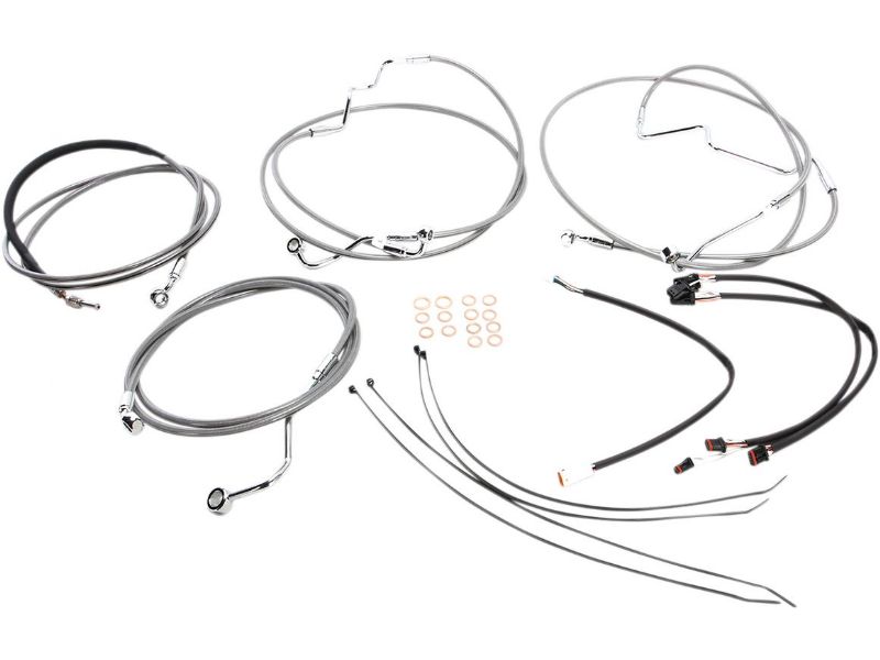 2. Kits include throttle and idle cables or fully terminated throttle-by-wire extensions, clutch cable or hydraulic clutch line, XR DOT brake lines, copper crush washers, hardware, and fully terminated turn signal and switch wiring extensions