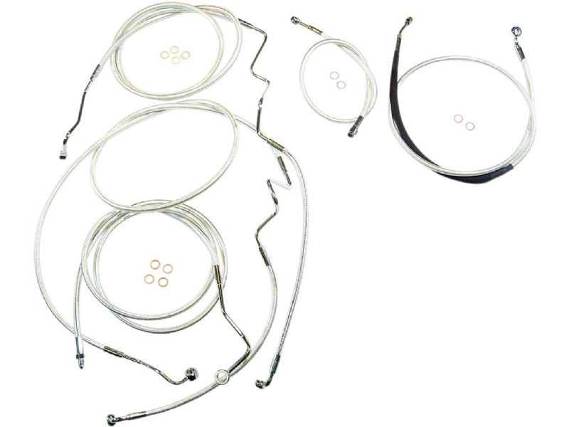 2. Kit includes throttle and idle cables of throttle-by-wire extensions, clutch cable or hydraulic clutch line, brake lines, copper crush washers, hardware, and any necessary switch wiring of turn signal extension
