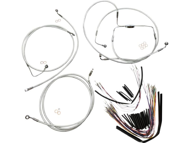 2. Kit includes throttle and idle cables of throttle-by-wire extensions, clutch cable or hydraulic clutch line, brake lines, copper crush washers, hardware, and any necessary switch wiring of turn signal extension