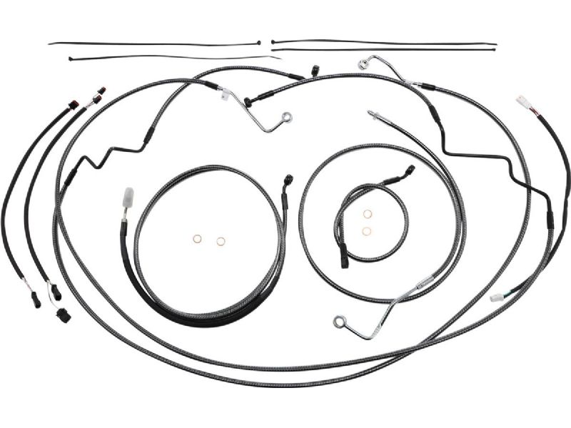2. Kit includes premium brake lines, clutch cable or hydraulic clutch line, throttle and idle cables or throttle-by-wire extensions, hardware, and fully terminated or plug-and-play switch and turn signal extensions