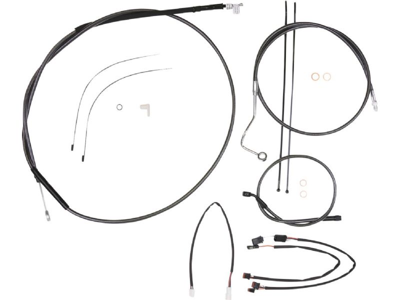 2. Kit includes throttle and idle cables of throttle-by-wire extensions, clutch cable or hydraulic clutch line, brake lines, copper crush washers, hardware, and any necessary switch wiring of turn signal extension, unless otherwise noted