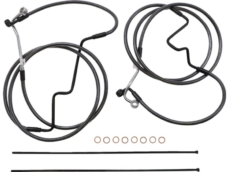 2. Kit includes throttle and idle cables of throttle-by-wire extensions, clutch cable or hydraulic clutch line, brake lines, copper crush washers, hardware, and any necessary switch wiring of turn signal extension, unless otherwise noted