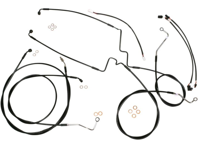 2. Kits include throttle and idle cables or fully terminated throttle-by-wire extensions, clutch cable or hydraulic clutch line, XR DOT brake lines, copper crush washers, hardware, and fully terminated turn signal and switch wiring extensions