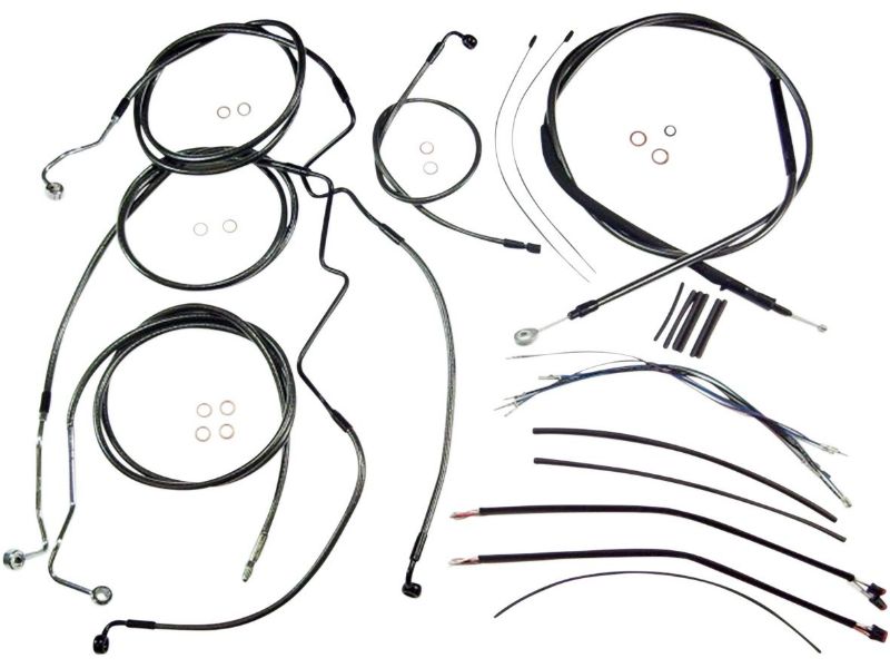 2. Kit includes throttle and idle cables of throttle-by-wire extensions, clutch cable or hydraulic clutch line, brake lines, copper crush washers, hardware, and any necessary switch wiring of turn signal extension, unless otherwise noted