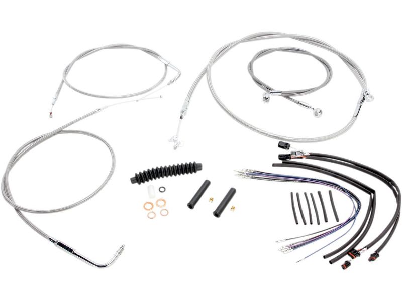 2. Kits include throttle and idle cables or fully terminated throttle-by-wire extensions, clutch cable or hydraulic clutch line, XR DOT brake lines, copper crush washers, hardware, and fully terminated turn signal and switch wiring extensions