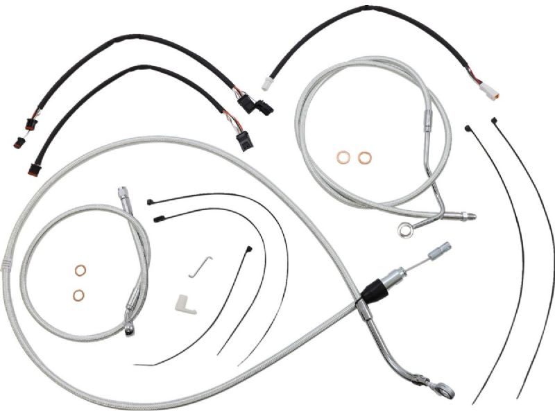 2. Kit includes throttle and idle cables of throttle-by-wire extensions, clutch cable or hydraulic clutch line, brake lines, copper crush washers, hardware, and any necessary switch wiring of turn signal extension