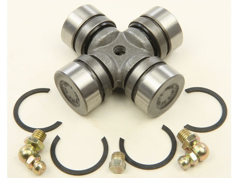 U-Joints are cold forged from SCM-415 steel, precision ground journals are case hardened to HRC58-61 U Joints are pre-greased with hi-temp Lithium Complex 3 grease Bearing cups feature a Quad lip seal to keep contamination out and grease in Centrally located grease zerk and grease channels in bearing cup evenly distributes grease Kits include cap plug to eliminate grease zerk for low clearance applications Honda Yoke assemblies have upgraded cross diameters from 17mm to 19mm Honda yoke assemblies feature stainless steel clamps and hi-quality neoprene rubber boots for long life and abrasion resistance