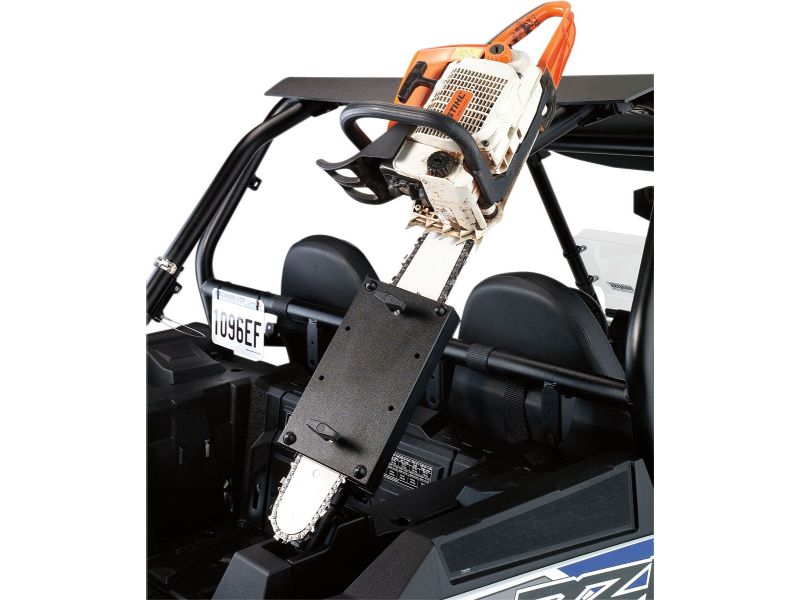 Offers the best in support and security for your chainsaw when you want the flexibility to mount it on either a horizontal or vertical round roll bar or bumper