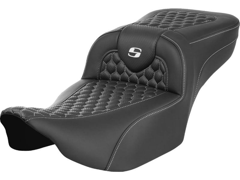 Roadsofa-„¢ Extended Reach Seat - without Backrest - Honeycomb - White Stitch - FLTR/FLHX ``23-``24