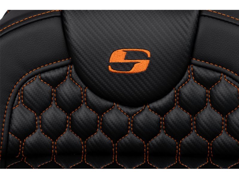 RoadSofa-„¢ Seat - Honeycomb - Orange Stitch - Extended Reach - without Backrest - FLH/FLT ``08-``23