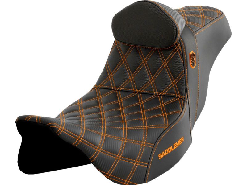 Pro Series SDC Performance Seat - with Backrest - Orange Stitch - FLH/FLT ``08-``23