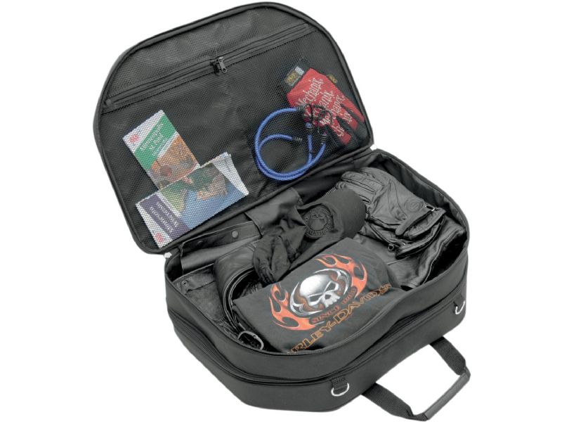 Multiple storage and organizer sections with a full-side main compartment opening so you have easy access to your stuff even when the luggage bag is in the Tour-Pak®