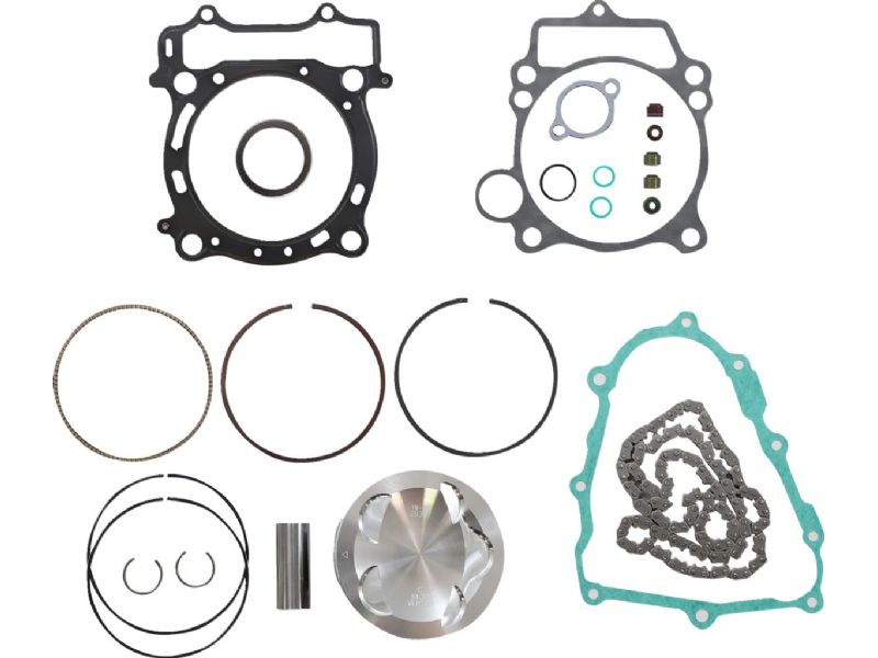 - Top-end piston kit includes piston, rings, pins, circlips, top-end gaskets and cam chain