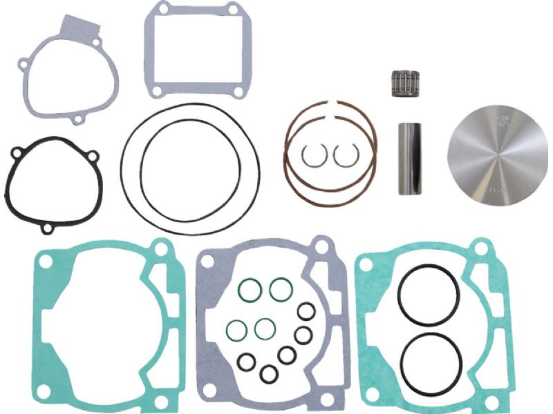 - Top end kit includes piston, rings, pins, circlips, top end gaskets, and wrist pin bearing